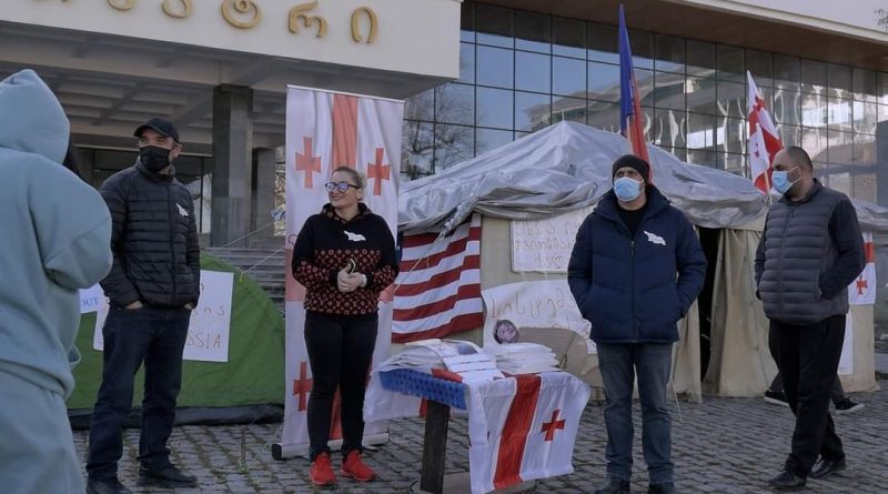 თელავის თეატრის წინ გაერთიანებული ოპოზიციის აქტივისტებმა კარვები გაშალეს