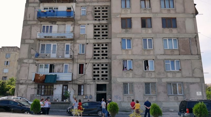 თელავში, კავკასიონის ქუჩაზე, საცხოვრებელი კორპუსის კედლები ინგრევა