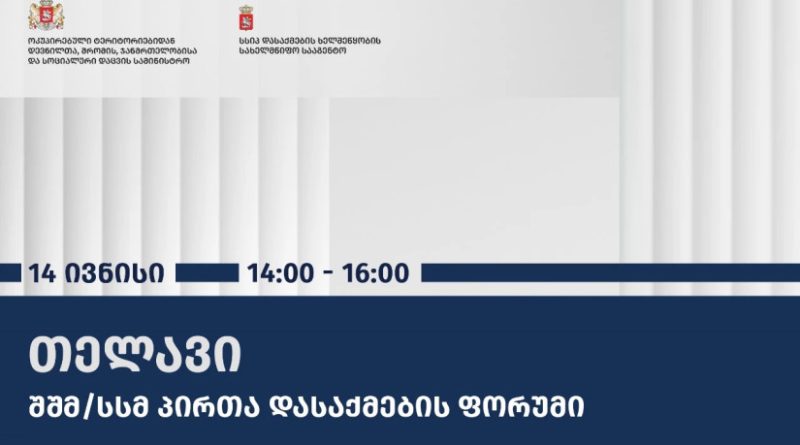 Read Moreდასაქმების ხელშეწყობის სახელმწიფო სააგენტოს ორგანიზებით, 14 ივნისს თელავში დასაქმების ფორუმი გაიმართება. ჯანმრთელობის, შრომის, ოკუპირებული ტერიტორიებიდან დევნილთა და სოციალური დაცვის სამინისტროს