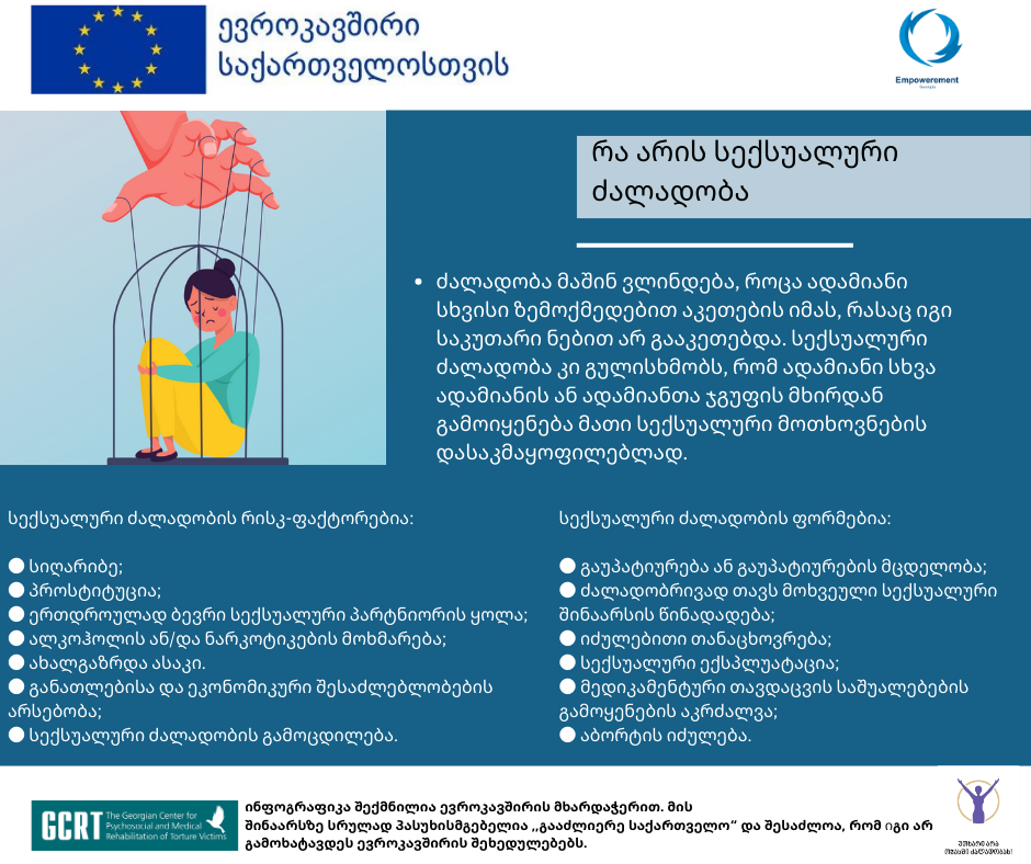 პროექტის ფარგლებში – ‘’ქალთა მიმართ ძალადობის პრევენცია“ , მომზადდა პოსტერი თემაზე ,,რა არის სექსუალური ძალადობა“.
