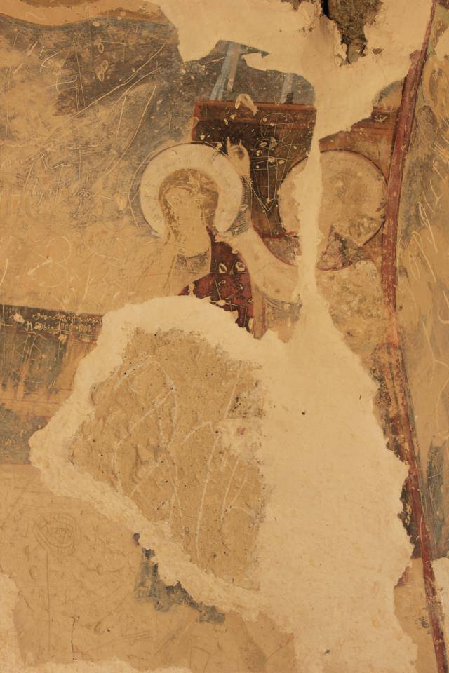 ეკლესია საგულდაგულოდაა მოხატული. ტაძრის დარბაზს საუფლო დღესასწაულთა ციკლის სცენები ამკობდა. გამოსახული იყო ნათლისღება, უფლის იერუსალიმში შესვლა, ჯვარცმა, ჯოჯოხეთის წარმოტყვევნა, ამაღლება, ღვთისმშობლის მიძინება. კომპოზიციები ახლა ძალზე დაზიანებულია და მისგან მხოლოდ ფრაგმენტებიღა შემორჩა.