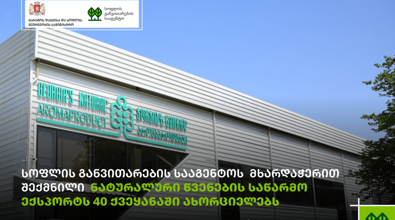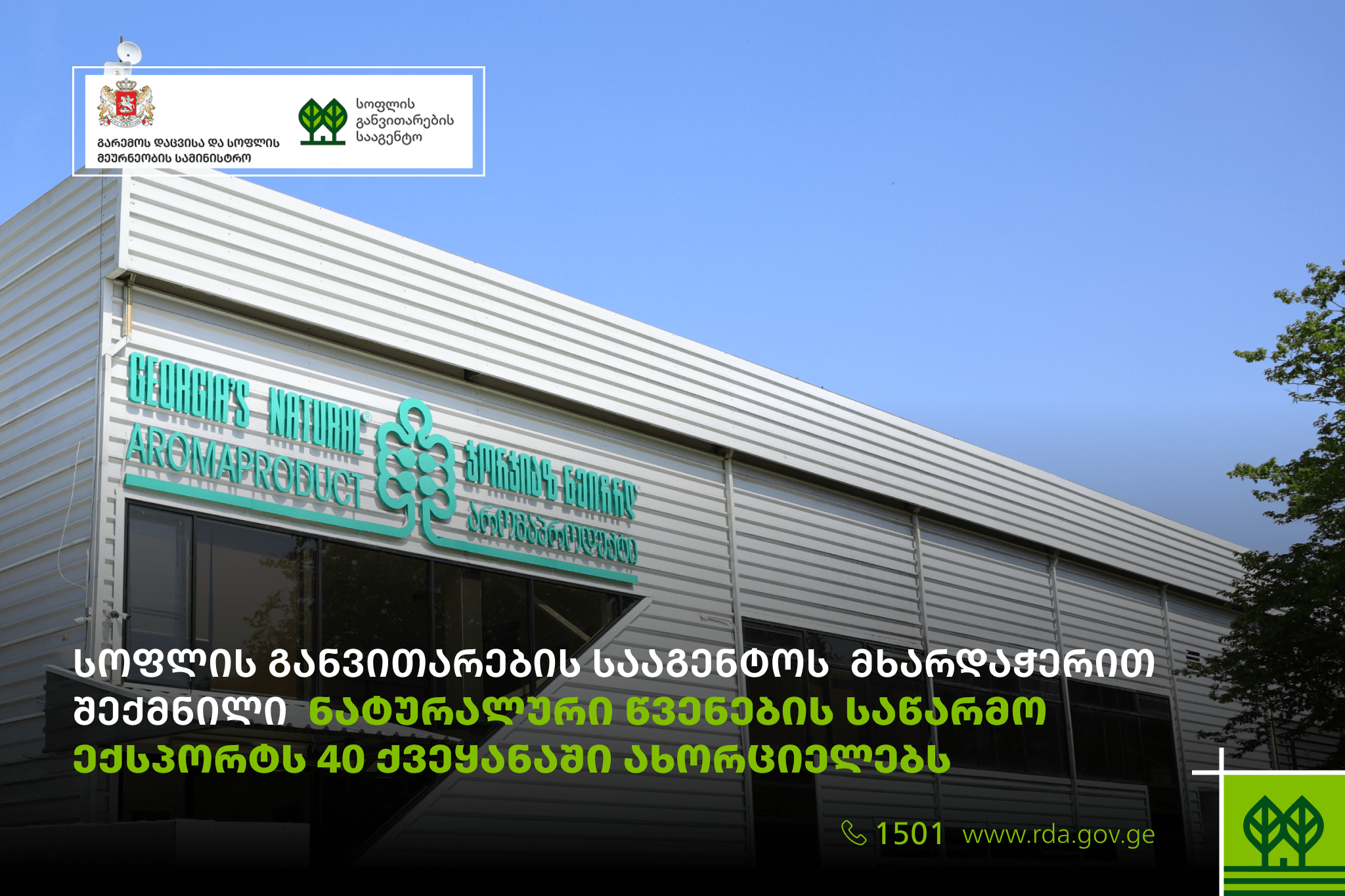 „ორგანული წვენების საწარმო „Georgias Natural” არის გარემოს დაცვისა და სოფლის მეურნეობის სამინისტროს სოფლის განვითარების სააგენტოს ერთ-ერთი წარმატებული ბენეფიციარი. აღნიშნულს ის ფაქტი ადასტურებს, რომ სახელმწიფოს მხარდაჭერით შექმნილი საწარმო ხილისა და ბოსტნეულის პრემიუმ ხარისხის წვენებს აწვდის ისეთ განვითარებულ ბაზრებს, როგორებიცაა იაპონია, ამერიკა, არაბული ქვეყნები, ევროკავშირის ქვეყნები“, – განაცხადა სოფლის განვითარების სააგენტოს დირექტორმა გიორგი დარჩიამ.