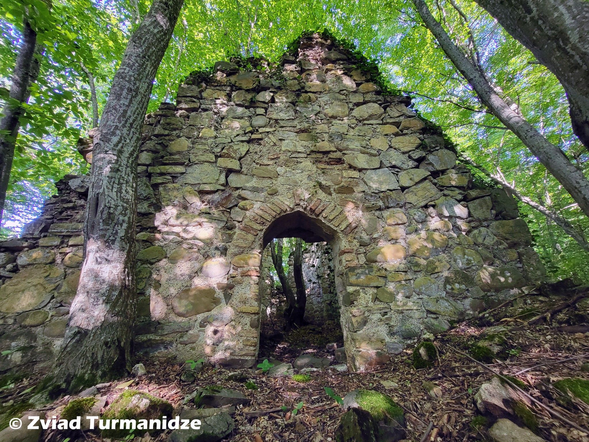 ,,დარბაზული ეკლესიას ჩრდილოეთით მინაშენი აქვს, აღსანიშნავია, აფსიდების ნალისებური მოყვანილობა. სამხრეთის კარი ამოშენებულია. ეკლესიის კამარები და კონქები ჩამოქცეულია”.