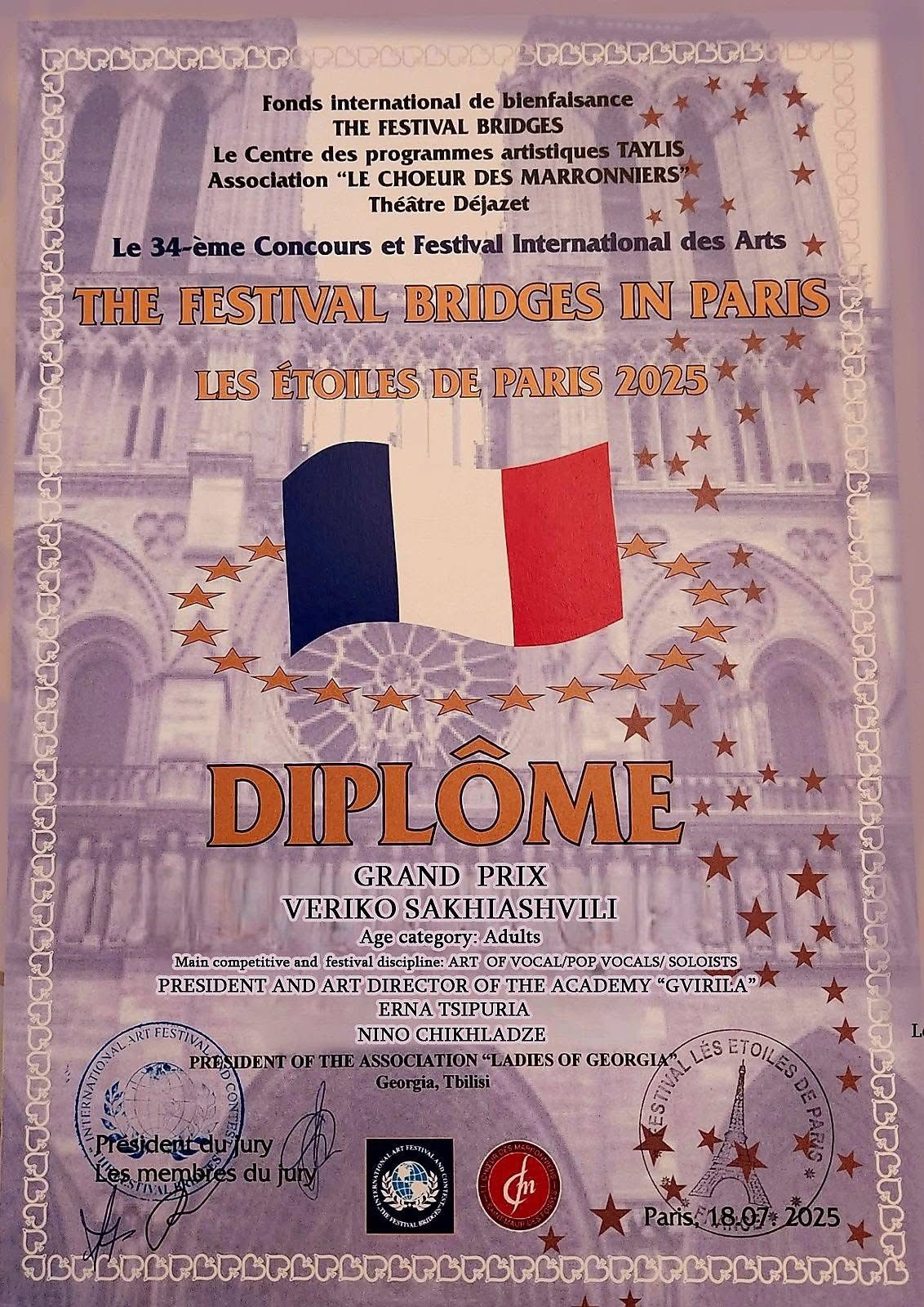 სკოლა-სტუდიის სამხატვრო და მუსიკალური ხელმძღვანელის ვერიკო სახიაშვილის ინფორმაციით, “სოლეი” მონაწილეობას იღებდა პარიზში გამართულ საერთაშორისო მუსიკალურ ფესტივალზე, სადაც მონაწილეობას იღებდა მსოფლიოს 22 ქვეყანა.