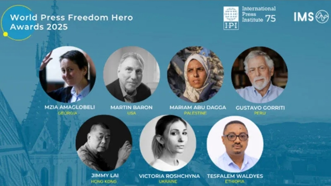 „შვიდი გამორჩეული ჟურნალისტი საქართველოდან, აშშ-დან, ღაზის სექტორიდან, პერუდან, ჰონგ-კონგიდან, უკრაინიდან და ეთიოპიიდან 2025 წლის IPI-IMS-ის მსოფლიო პრესის თავისუფლების გმირებად დასახელდა თავისუფალი მედიისთვის ბრძოლაში გამოჩენილი განსაკუთრებული გამბედაობისა და გამძლეობისთვის.