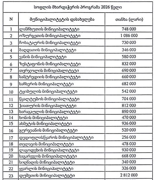 აღსანიშნავია, რომ 2025 წელს ამავე მიზნით ასევე 40 830 000 ლარი გამოიყო.