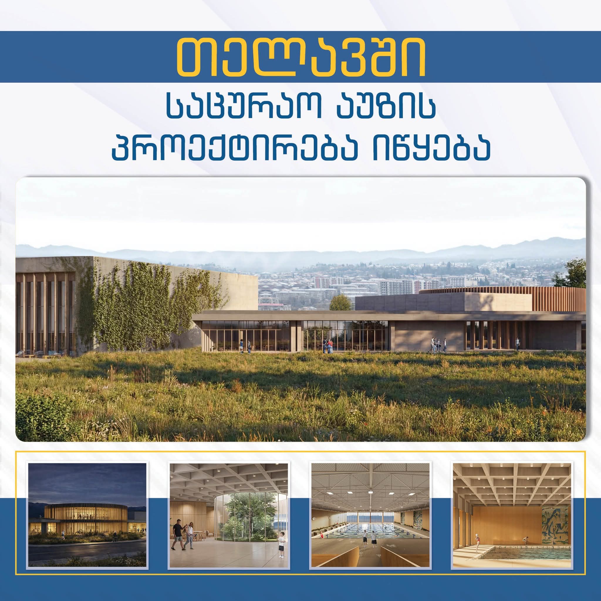 თელავის თანამედროვე სპორტული კომპლექსი მსოფლიო ცურვის ფედერაციის სტანდარტების შესაბამისად უნდა აშენდეს და მოეწყოს დახურული აუზები ცურვის, სინქრონული ცურვისა და წყალბურთისთვის.