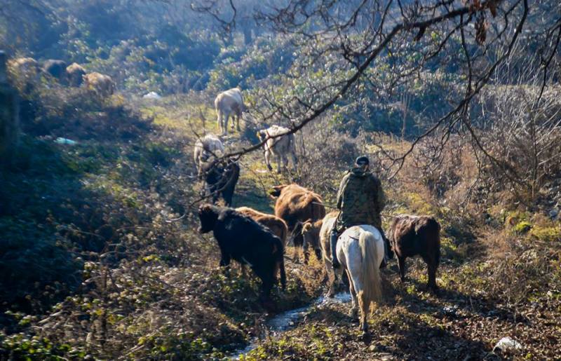 ძროხები დაბინძურებულ ხევში იკვებებიან