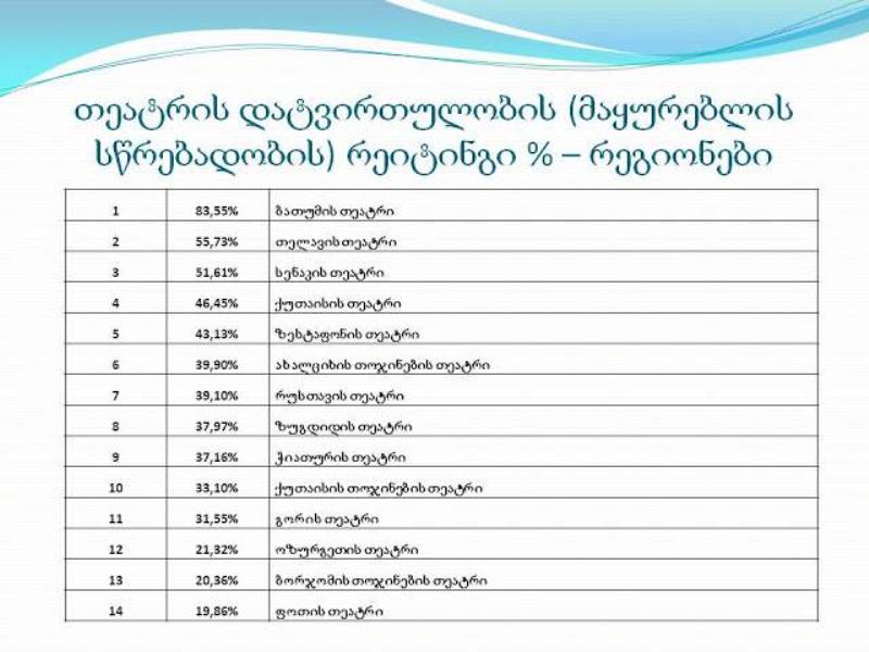 მაყურებლების აქტივობის მიხედვით თელავის თეატრი მეორე ადგილზეა