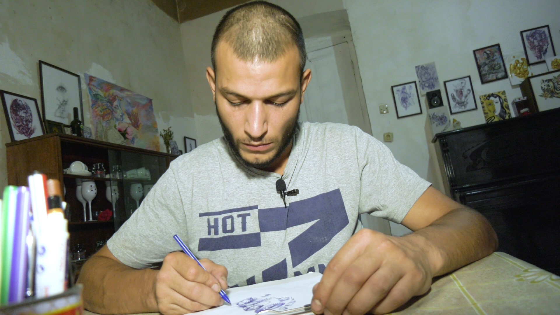 ქალაქ თელავში მცხოვრები ახალგაზრდა მხატვარი ზურა ტოტიკაშვილი ნახატებს ავტოკალმით ქმნის.