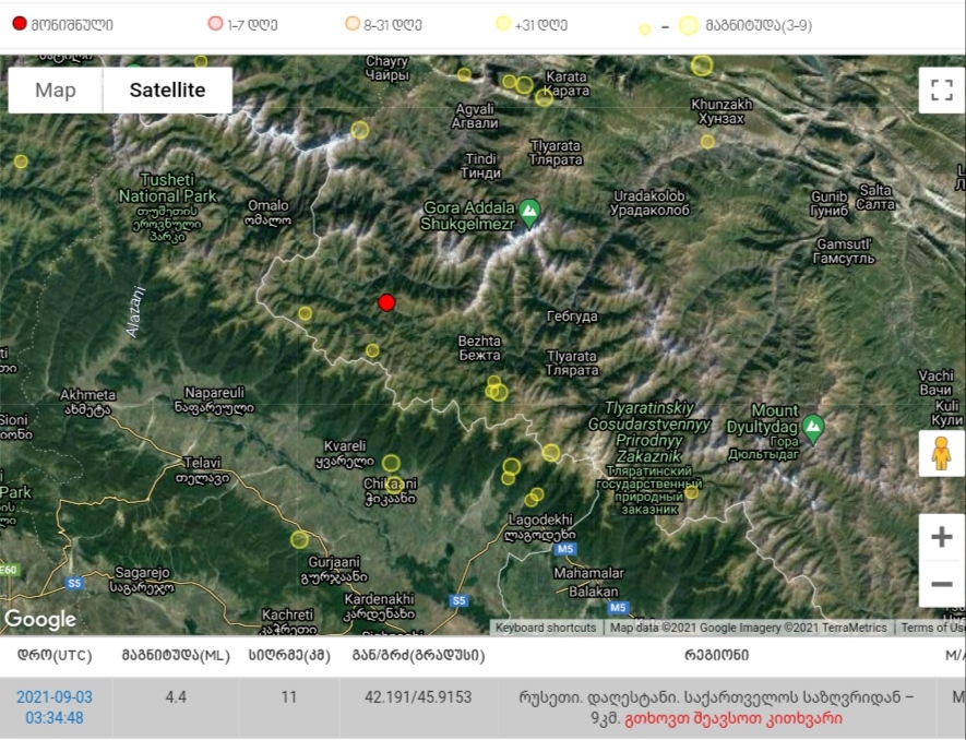 სეისმური მონიტორინგის ეროვნული ცენტრის ცნობით, მიწისძვრის ეპიცენტრი დაღესტანია, საქართველოს საზღვრიდან 9 კმ-ის მოშორებით