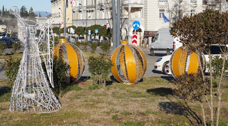 თელავში ნაძვის ხის და საახალწლო ილუმინაციების მონტაჟი მიმდინარეობს- ფოტოები